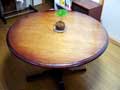 9月19日(月)アメ商でひとめぼれ まるテーブル、一目惚れして買ってしまいました。郡山、国道4号線沿いのアメ商百貨。もちリサイクル品の1万3000円也。車のトランクに収まらず、ネジ釘はずし分解して持って来ました。これから打ち合わせはココで行われます。(一)