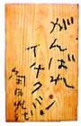 「がんばれイチクミ!」とブ厚い板に書いてある。今年頭に「対岸の彼女」で、直木賞を獲得した角田光代さんが書いてくれたものです。今年の春、自分が福島へ行くのでエールを送ってくれました。2年ほど前に「今、何してる?」という角田さんの単行本の表紙をデザインしたのが出会いのきっかけでした。当時自分は吉祥寺、角田さんは西荻窪に住んでいて、JR中央線のとなり駅でした。角田さんはほんのり、でも芯のある女性です。