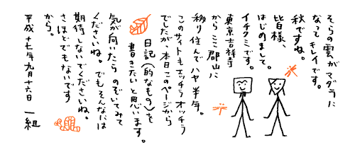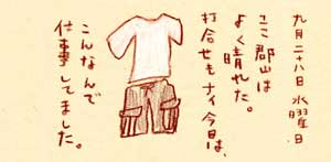 9月21日(水) 手のひらサイズの「イチクミオリジナルカレンダー2006」 ただ今製造中です。透けた和紙にちゃんと12ページプリントの手作りなもので、100個も作ればクタクタの限界とおもわれます。お仕事いただいた方にさしあげようと思ってるんですがイランかなー。(一)