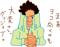 お、いい夕陽出とるわ。夕陽にゃ日曜も月曜も関係ネェもんなぁ。さて、おNEWのプレゼン..コレ決まってほしーなァ。クライアントはまだ言えない。デザイナーは金井理明さん。恥ずかしながら存じあげなかったんスが、金井さんは、佐藤可士和さんや日本一敏腕プロデューサーの佐々木宏さん達といつもプロジェクトを組む、電通の凄腕ADです。ってか。すんげぇぇええ。だから決まってくださいね神ダノミ。さ、本日も夜更けまでかかっちゃうダヨきっと..。左はFTVさんの取材の時、アナウンサーの原田幸子さんが37秒で描きあげた超対策、いや超大作ナントカ・ゾウさん。(一)