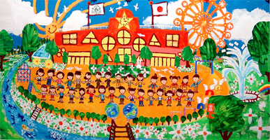ぁぁぁ... デキタ。長女と次女の通う桑野小が、明日「桑野っ子祭り」とゆう文化祭で、ここ数日、夜ナ夜ナそこで登場する絵を描いていた。3年生たちが持ち寄った未来の桑野小のアイデアスケッチ群を、一枚の絵にして下さいっ!!と、そぉれはトテツもなくスペクタクルなアレであったが、んんでも案外まとまっちゃうもんだなぁぁぁ。オッサン40が、それは必死に童心をタタキ起こして描きましたよ。畳一枚ほどの絵です。 夜、学校へ納品に行ったら校長室にイザナわれ、準備にテンテコマイの先生たちも集まって来て、感想&記念写真タイム。ウーシ、暖ったけぇ桑野っ子祭りとなりますよーに。イモ煮グツグツなる週末を。(一)