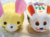 ギャラリー観で、ウサギの三春の張り子を買ってきまスた。なんだろぉぉ...かーわゆいコレぇ。いつから自分はこぉゆうのをイイなぁぁと思うようになったんだろぉ。観てるだけでシヤワセになるお正月グッズがたくさんタタタターッと並べてありまスた。来年1月10日まで開かれている毎年恒例の「うれし、めでたし、お正月展」。郵政省の記念切手になったウサギの張り子もいましたヨ。人気がある順から早く売り切れるらしいので、おもしろそぉ〜と思ったあなた、お早めに訪れてみてくださーい。写真、黄色いウサギは次女4年生が学校の授業で塗ってきまスた。(一)