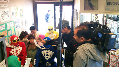 11月12日(火) ガイレンジャー。福島テレビの取材。鈴木心さんの撮影。を、覗いてきますた。終始ケラケラ笑いながらの、楽しい時間でおました。心君は背ぇ高っ。(一)